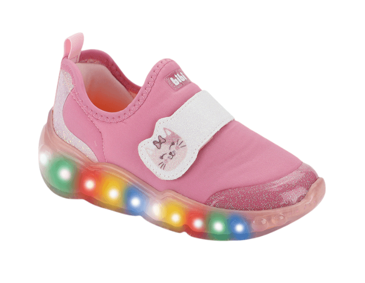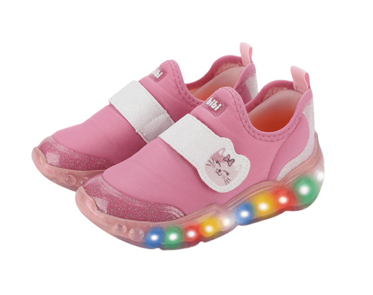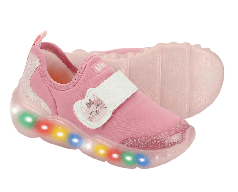 tenis infantiles bibi roller celebration 3.0 pink con estampado de gatito con velcro y luz led son la elección perfecta para los más pequenos que aman el brillo y la diversión. con un bonito estampado de gatitos, luces led en la suela y cierre de velcro, combina comodidad, practicidad y un toque de encanto para el día a día.