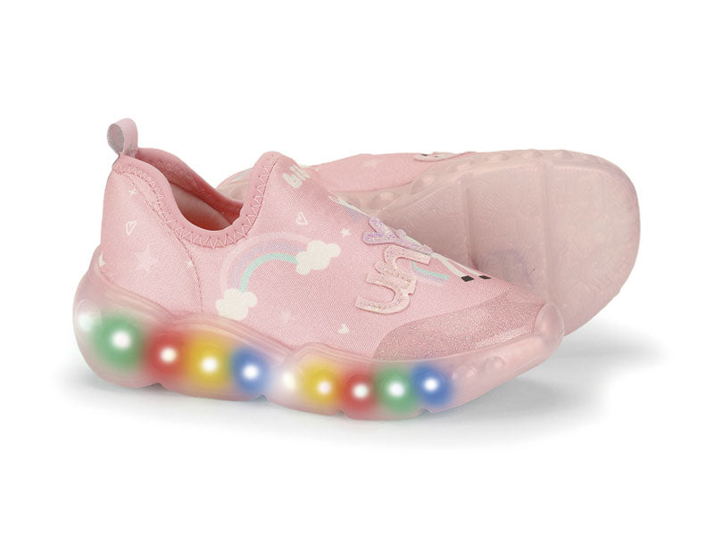Este modelo combina diversión (luces), comodidad (elastano + plantilla Fisioflex) y practicida. Es ideal para niñas que quieren brillar mientras caminan y juegan.